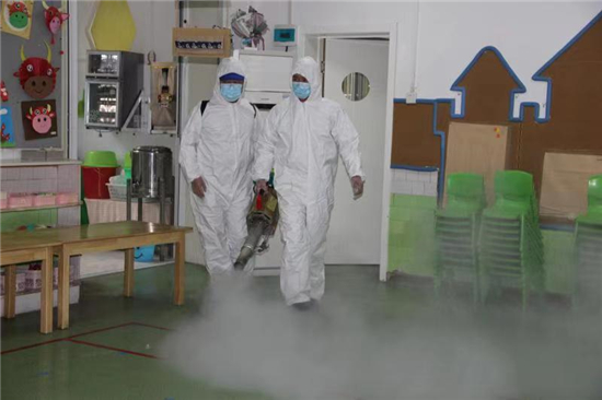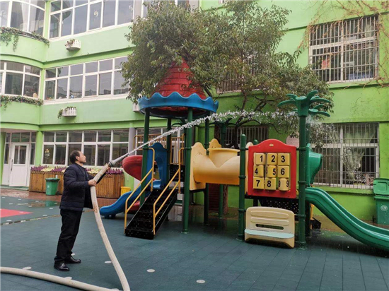 2月27日下午, 周口市市直幼兒園聯(lián)系周口市藍(lán)天救援隊專業(yè)消殺人員,對幼兒園的公共區(qū)域環(huán)境、大型玩具、走廊、活動室等場所逐步實施消殺,重點對樓道、樓梯扶手、衛(wèi)生間等關(guān)鍵區(qū)域?qū)嵤┟芗?,做到全面、徹底、不留死角?/p>
