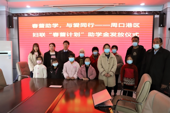 3月4日下午,周口港區(qū)婦聯(lián)舉辦“春蕾計劃”助學(xué)金發(fā)放儀式。港區(qū)黨委委員張東立出席儀式并講話。港區(qū)婦聯(lián)、港區(qū)文教衛(wèi)計生科技辦和相關(guān)學(xué)校負(fù)責(zé)同志參加助學(xué)金發(fā)放儀式。