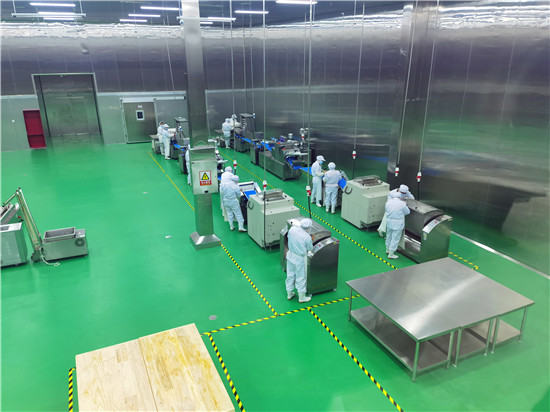 據(jù)了解,周口乾盛中央廚房是川匯區(qū)2020年重點(diǎn)招商引資項(xiàng)目。公司以綠色、健康、營養(yǎng)、安全的餐飲服務(wù)為宗旨,采用國內(nèi)先進(jìn)的食品自動(dòng)生產(chǎn)流水線,采取“統(tǒng)一配方、統(tǒng)一加工、統(tǒng)一配送”的方式,為全市大中專院校、中小學(xué)校、企事業(yè)單位等提供專業(yè)團(tuán)膳服務(wù)。記者在現(xiàn)場(chǎng)看到,該企業(yè)的生產(chǎn)操作間細(xì)分為面食、烹飪、米飯、凈菜等獨(dú)立區(qū)域。操作間里的工作人員穿戴一次性消毒服裝、口罩、頭罩、鞋套,各司其職、有條不紊地操作設(shè)備。全廠安裝有300多個(gè)攝像頭,實(shí)現(xiàn)360度無死角監(jiān)控,可以隨時(shí)查看生產(chǎn)和配餐情況。在蔬菜清洗處理方面,該企業(yè)先對(duì)蔬菜進(jìn)行拆箱、分揀并開始一次清洗,然后進(jìn)行二次清洗、切割和脫水,使用凈化水對(duì)蔬菜進(jìn)行旋流沖洗,并通過探針探測(cè)水的潔凈度,根據(jù)水質(zhì)量隨時(shí)更換。生產(chǎn)操作間內(nèi)的先進(jìn)工藝和設(shè)備也格外吸人眼球,旋轉(zhuǎn)式燃?xì)獬村佋谶@里被稱為炒菜機(jī)器人,讓炒菜實(shí)現(xiàn)了智能化、標(biāo)準(zhǔn)化,工作人員只需將切配脫水后的材料按照標(biāo)準(zhǔn)調(diào)配好入鍋,設(shè)置自動(dòng)運(yùn)轉(zhuǎn)程序就可以,不用人工攪拌。