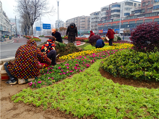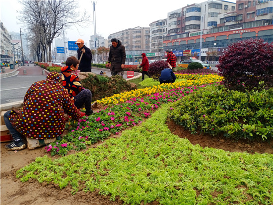 一場春雨過后,處處洋溢著勃勃生機。3月20日上午,記者在周口中心城區(qū)大慶路與交通大道交叉口處的紅綠燈旁看到,園藝工作人員正在忙碌著補種花木,黃色、綠色、紅色的花兒平鋪在一起組合成一道亮麗的風景,扮靚了街頭,令人賞心悅目。③2
