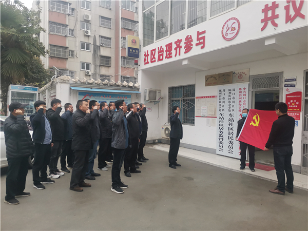 在永安小區(qū)活動(dòng)現(xiàn)場(chǎng),黨員干部、小區(qū)黨群議事會(huì)成員面對(duì)黨旗,重溫入黨誓詞,牢記共產(chǎn)黨人使命,不忘為民服務(wù)初心。