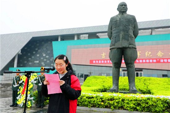 4月2日,扶溝高中校團委組織部分師生,懷著對烈士無限崇敬的心情,來到吉鴻昌將軍紀念館,祭掃吉鴻昌將軍銅像,緬懷吉鴻昌將軍。祭掃活動由高一團支部負責(zé)人吳肖老師主持。