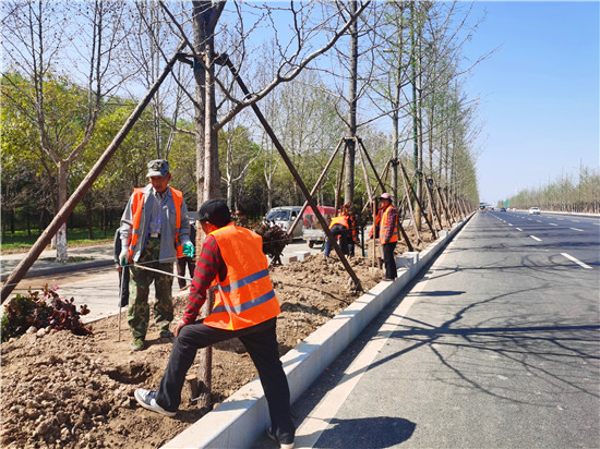 日前,氣溫回暖,春光明媚,正是種植樹木、養(yǎng)護(hù)苗木的好時(shí)節(jié)。連日來,在周口大道北段,園林工人利用現(xiàn)在好時(shí)節(jié),忙于栽植各種樹木,建設(shè)綠化工程。
