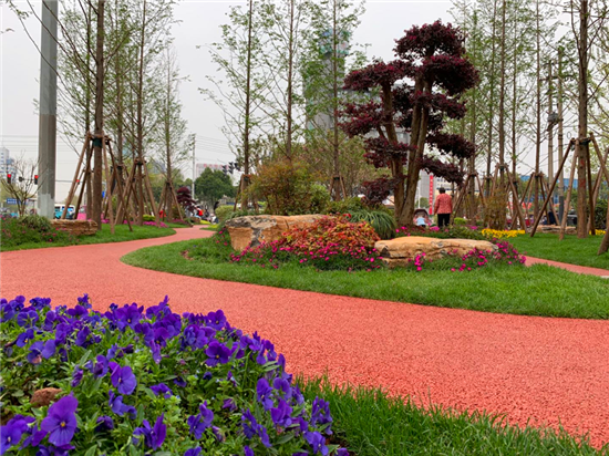 “風(fēng)景真是太美了,咱們坐這兒歇會(huì)吧。”4月7日一大早,園里就熱鬧起來,有蹣跚學(xué)步的孩童,有鍛煉身體的中年人,也有互相攙扶依偎的老人。自打游園開放后,市民李大媽成了這兒的??停俺蚩站蛶еO子來這兒玩?!本G化帶一夜間“變身”,讓過往市民贊嘆不已,大家的幸福感、獲得感進(jìn)一步增強(qiáng)。
