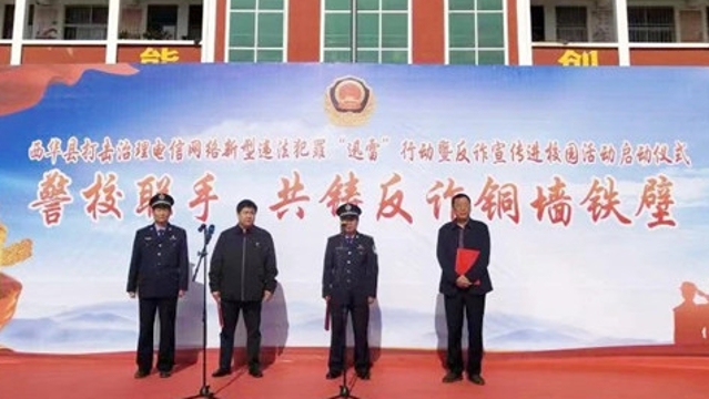 近日,鄲城縣公安局女子反詐宣傳隊(duì)負(fù)責(zé)人王冰等與縣公安局反詐中心民警一起,來到寧平一中,開展反詐騙、防溺水宣傳。寧平鎮(zhèn)鎮(zhèn)長(zhǎng)王樹勤參加活動(dòng)。