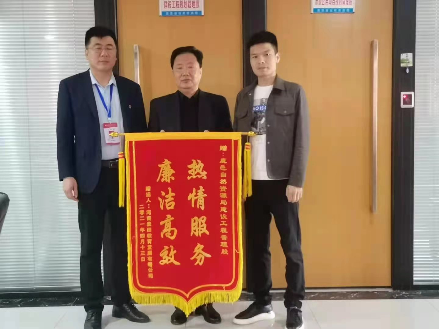 4月14日上午,河南麥田教育發(fā)展有限公司將一面印有“熱情服務、廉潔高效”字樣的錦旗送到了鹿邑縣自然資源局建設工程規(guī)劃管理股,感謝他們提供了優(yōu)質高效服務。