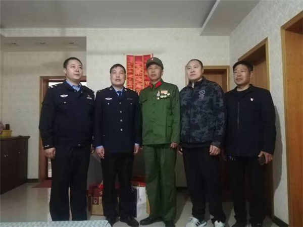 一大早,該所黨員民警身著戎裝,排著整齊的隊(duì)伍,分別前往荷花路派出所轄區(qū)的閆莊社區(qū)、荷花社區(qū)、前王營等社區(qū),探望慰問年逾花甲的抗戰(zhàn)老英雄,聆聽他們在抗擊侵略的戰(zhàn)斗歲月里浴血奮戰(zhàn)、不屈不撓的感人故事。在戰(zhàn)斗英雄尤洪亮家中,民警深切感受了那場保家衛(wèi)國反擊戰(zhàn)的慘烈,看到了新時代最可愛的人。