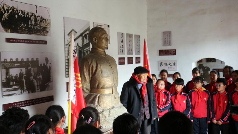 在全國上下掀起黨史學(xué)習(xí)教育熱潮之際,近日,來自吉鴻昌小學(xué)六(1)班的30名孩子,在學(xué)校少先隊輔導(dǎo)員的帶領(lǐng)下來到呂潭學(xué)校舊址,開展主題為“弘揚鴻昌精神、傳承紅色基因”的主題隊會活動,參觀了吉鴻昌學(xué)校和吉鴻昌故居,循著英雄的足跡,親身感受吉鴻昌精神的內(nèi)涵,接受一場紅色的精神洗禮。期間,在吉鴻昌將軍塑像前,何國志老人生動地講解了吉鴻昌將軍親手斃堂侄、創(chuàng)辦吉鴻昌學(xué)校、首次向中國人介紹電視等身前事跡,在場的孩子感動得熱淚盈眶。 “聽了何爺爺?shù)闹v述,我被吉鴻昌將軍的事跡深深感動,長大后也要成為一名像他一樣的人!”張晨曦同學(xué)說。