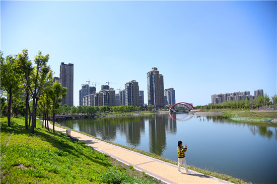 眼下雖不是詞中所描繪的初春時(shí)節(jié),但是暮春的水系風(fēng)光更具詩(shī)情畫(huà)意。女?huà)z路魚(yú)翔湖是一處以水凈化、水景觀、水科普為主的濱河濕地游園。漫步于此,新綠點(diǎn)綴其中,步道曲徑通幽,河水清澈透明,頓覺(jué)神清氣爽。沙河玉盤(pán)落珠節(jié)點(diǎn),曲廊環(huán)繞,波光鱗鱗,垂柳慢舞,河流猶如飄帶蜿蜒流淌,一路步行聞花香聽(tīng)鳥(niǎo)鳴,繪出一幅唯美畫(huà)卷。②9