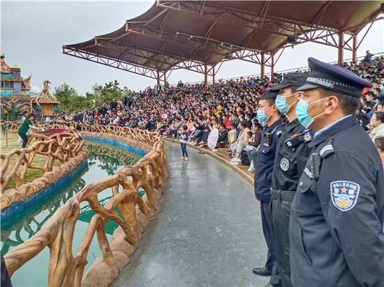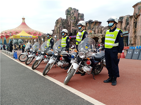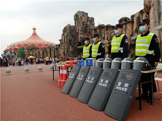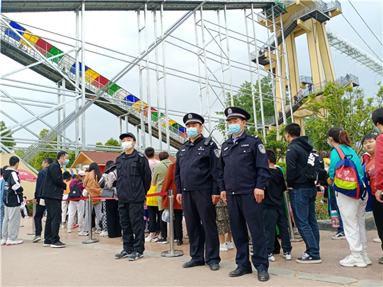 “接受游客求助、及時調(diào)解糾紛、處理園內(nèi)外各類突發(fā)事件……”在一天緊張而繁忙的工作中,民警顧不上休息,堅守在景區(qū)一線,用自己的辛苦和汗水,換來了游客的游園安全,為游客創(chuàng)造了良好的治安環(huán)境。