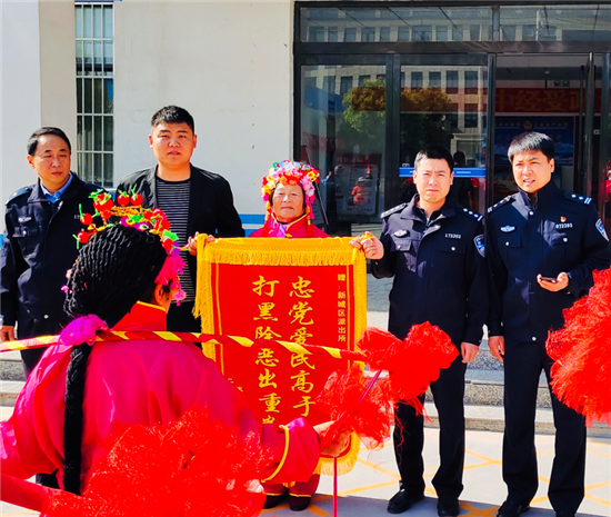 “忠黨愛民高于天,掃黑除惡出重拳。感謝你們神速破案,你們真是群眾的保護(hù)神?!?月1日,鄲城縣新城街道辦事處一電動(dòng)車失主來到新城派出所,送來錦旗,感激地說。
