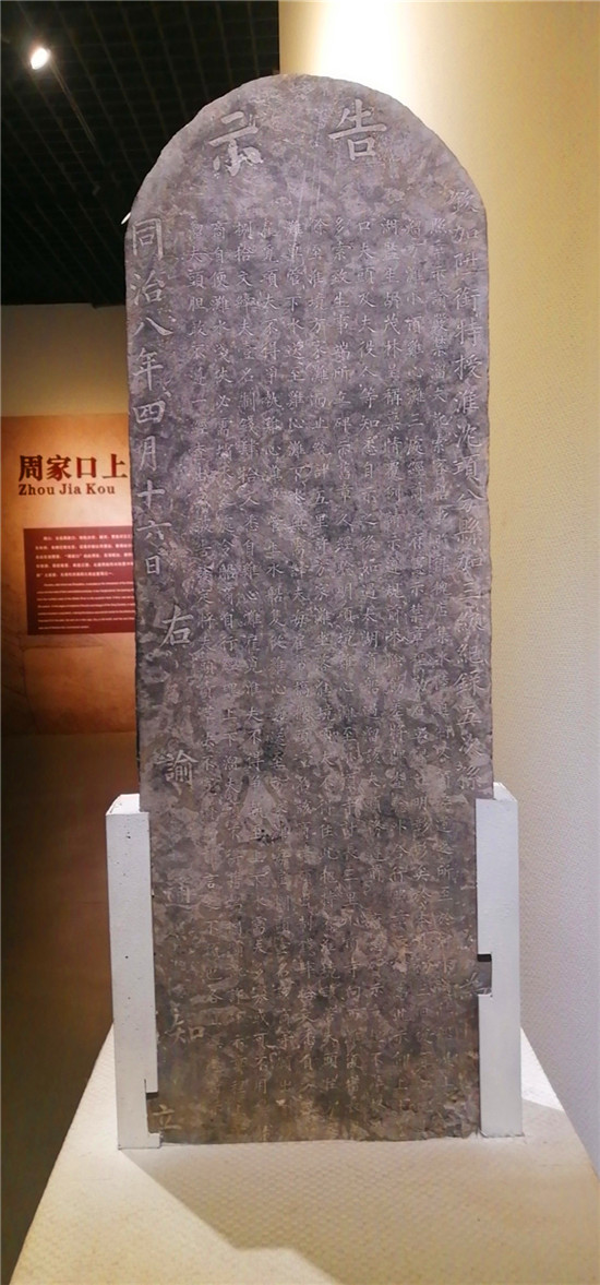 這通《嚴(yán)禁溜夫訛索客船事告示碑》作為當(dāng)時周口水運(yùn)秩序管理中的官方意志,為研究清代晚期周口漕運(yùn)文化提供了真實(shí)寶貴的歷史資料。在周口市博物館,它卓然獨(dú)立于一隅,默默地講述著那段水路風(fēng)云。③6