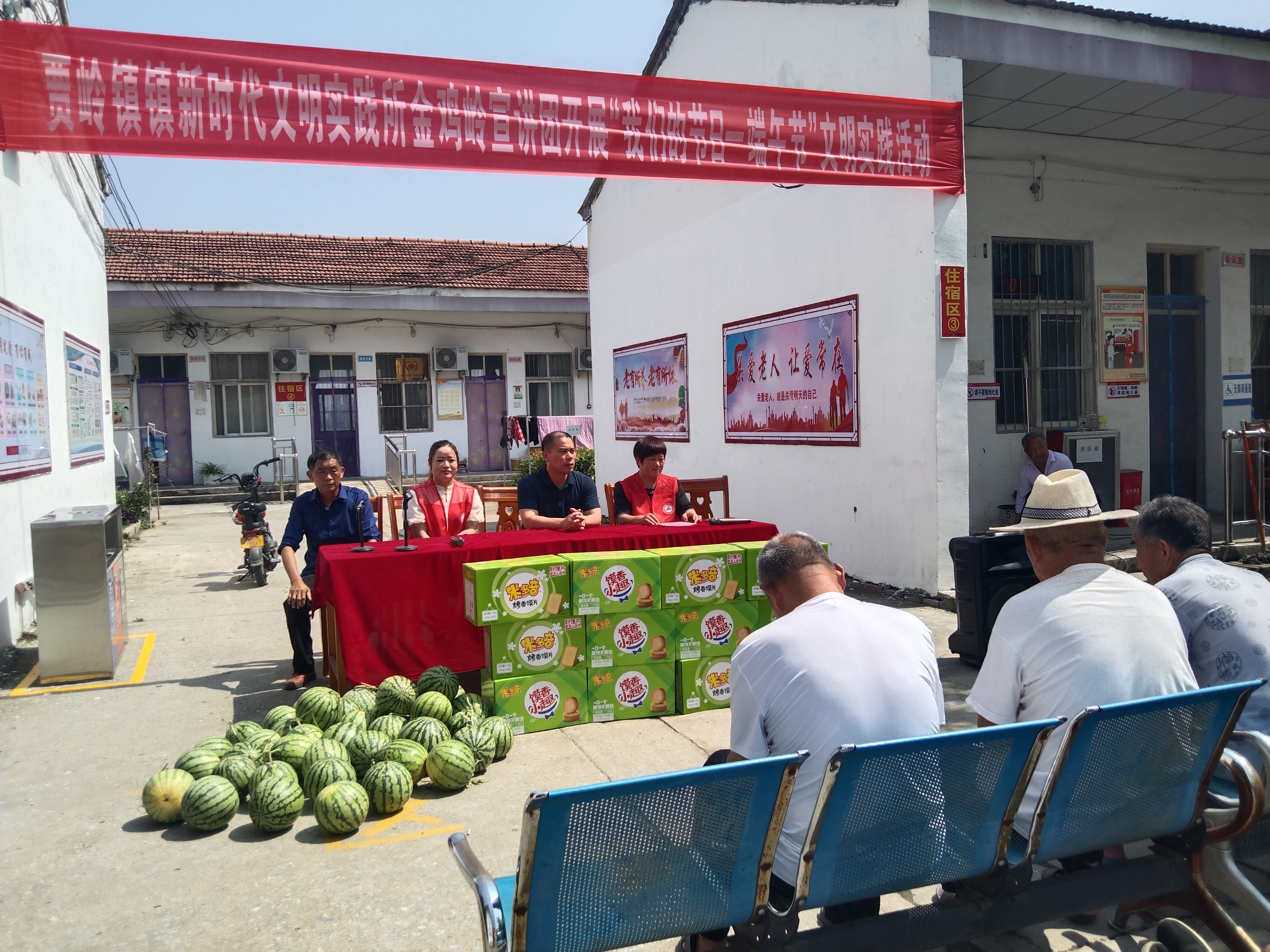 端午節(jié)將至,6月20日上午,項(xiàng)城市賈嶺鎮(zhèn)新時(shí)代文明實(shí)踐所金雞嶺宣講團(tuán)志愿者走進(jìn)該鎮(zhèn)敬老院,為老人們送去粽子、西瓜、糕點(diǎn)等愛心物品,并為老人們表演大鼓書《百善孝為先》等文藝節(jié)目,以此表達(dá)對老年人的關(guān)愛之情。