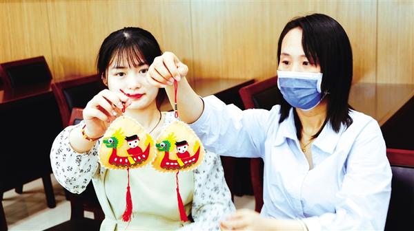 6月20日,市城鄉(xiāng)一體化示范區(qū)工作人員展示做好的香囊。當(dāng)日,市城鄉(xiāng)一體化示范區(qū)開展“聞香過端陽 仲夏戴香囊”文明實(shí)踐主題活動(dòng),從拼龍舟、縫香囊、畫團(tuán)扇、DIY粽子等一系列活動(dòng)來沉浸式體驗(yàn)優(yōu)秀傳統(tǒng)手工藝文化。