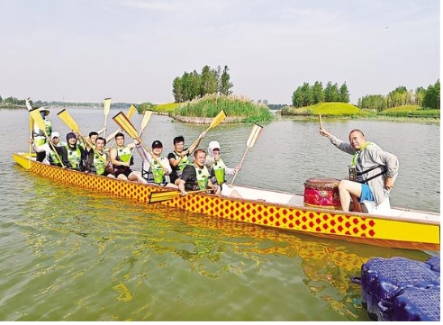 “咚咚咚……”近日,市城鄉(xiāng)一體化示范區(qū)引黃調(diào)蓄湖水面上水花翻涌,激昂的鼓點(diǎn)破空而來。2025“國緣杯”周口市第十屆中華龍舟賽的參賽隊(duì)伍正在進(jìn)行最后的沖刺訓(xùn)練。