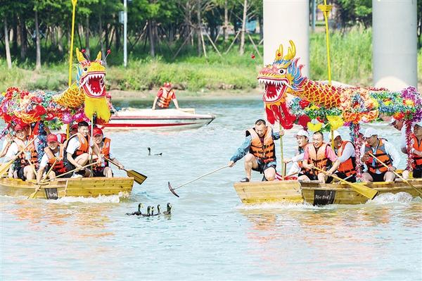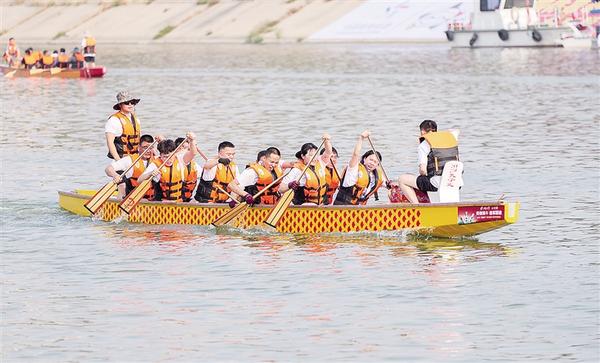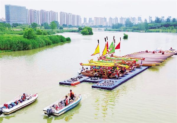 6月20日上午,周口市第八屆中華龍舟賽激烈進(jìn)行中。當(dāng)日,河南省第十一屆中華軒轅龍舟大賽暨周口市第八屆中華龍舟賽在周口市水上運(yùn)動(dòng)中心開賽。賽前,水上拔河、翎船捕鴨等傳統(tǒng)表演讓觀眾大飽眼福。