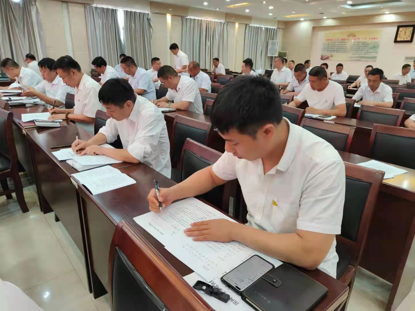 此次測(cè)試答題采取書面答卷的形式進(jìn)行,考題以單項(xiàng)選擇題、多項(xiàng)選擇題以及簡(jiǎn)答論述題三種形式為主,旨在全面檢驗(yàn)公司黨員干部學(xué)習(xí)貫徹黨紀(jì)政紀(jì)條規(guī)的學(xué)習(xí)成果,促進(jìn)大家自覺“學(xué)紀(jì)、知紀(jì)、遵紀(jì)”。