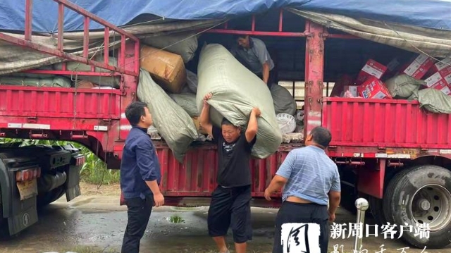 • 7月30日,一輛滿載情誼的中型貨車開進周口港區(qū)管委會院內。貨車來自信陽市潢川縣隆古村,近期,隆古村村民得知周口汛情嚴重,在省委組織部駐村扶貧第一書記韓雪霏的倡議下,精心準備了5.6噸防汛救災物資支援周口港區(qū)。