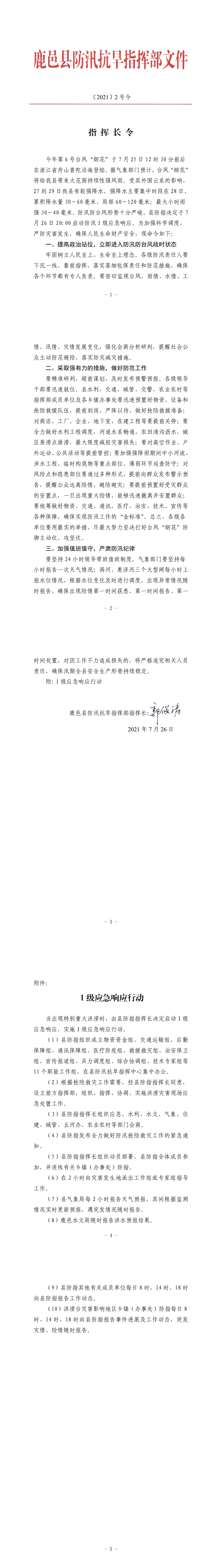 鹿邑縣防汛抗旱指揮部于7月26日晚8點啟動防汛Ⅰ級應(yīng)急響應(yīng),并發(fā)布《指揮長令》2號,從防汛Ⅳ級應(yīng)急響應(yīng)提升到防汛Ⅰ級應(yīng)急響應(yīng),動員全縣上下積極行動,做好防范,應(yīng)對臺風“煙花”帶來大范圍持續(xù)性強風雨。
