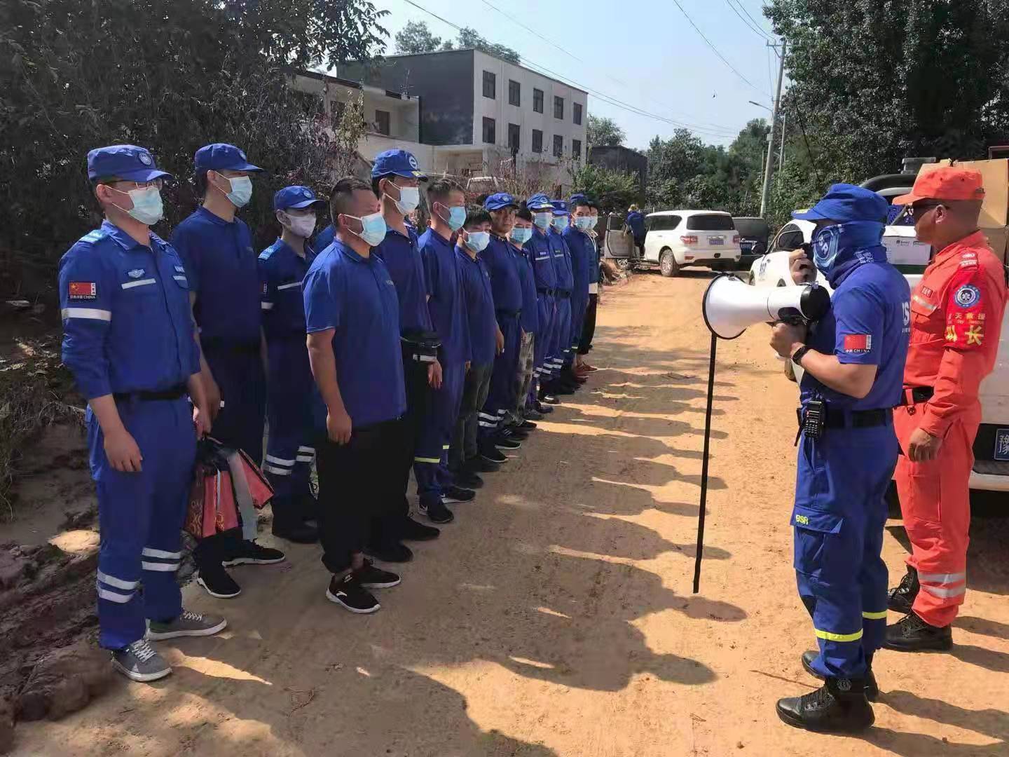 7月29日上午10時(shí),在隊(duì)長(zhǎng)肖永德的帶領(lǐng)下,周口川匯藍(lán)天救援隊(duì)30名隊(duì)員趕赴鄭州滎陽(yáng)受災(zāi)較重的賈峪鎮(zhèn)賈峪村進(jìn)行災(zāi)后消殺工作。