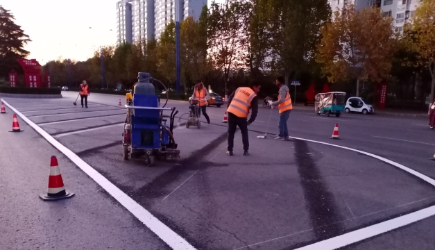 • ?11月9日17時(shí)許,記者在周口市中心城區(qū)文昌大道與中原路交叉口看到,施工人員正在對(duì)交叉路口上的交通標(biāo)志線進(jìn)行施劃,規(guī)范車輛和行人通行秩序,保證交通安全暢通有序,方便群眾出行。