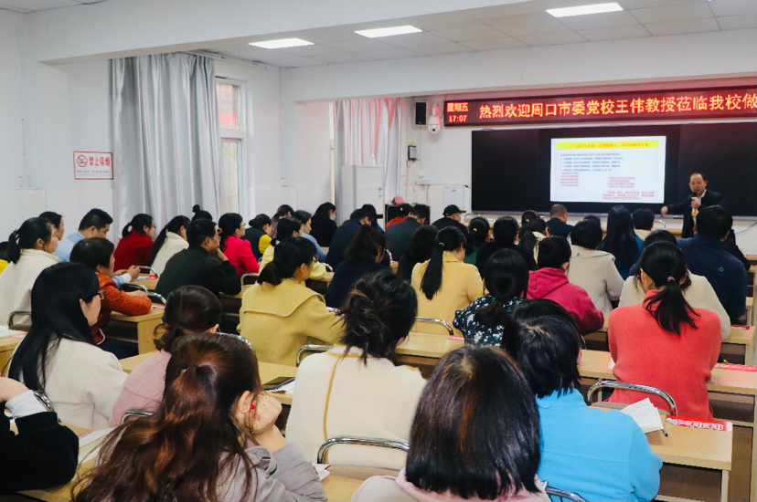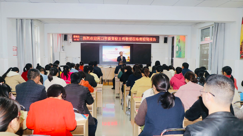 宣講會上,市委黨校宣講團講師王偉以“深入學習貫徹市五次黨代會精神、開啟全面建設社會主義現(xiàn)代化周口新征程”為主題,從充分認識市五次黨代會的重大意義、準確把握市五次黨代會的精神要義、全面落實市五次黨代會的目標任務三方面,詳盡解讀了市五次黨代會主旨報告的精神實質(zhì)和豐富內(nèi)涵。整場報告脈絡清晰、論述深刻、內(nèi)容豐富,既有深入淺出的理論闡述,又有結(jié)合我市發(fā)展的實例分析,更有教育實踐層面的對策思考,為該校教職工深入、完整、系統(tǒng)地領會市五次黨代會精神,有力推進貫徹落實黨代會精神提供了一把“金鑰匙”。
