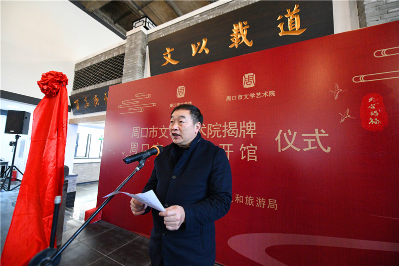 市文聯(lián)主席吳青峰在開館儀式上宣讀賀信
