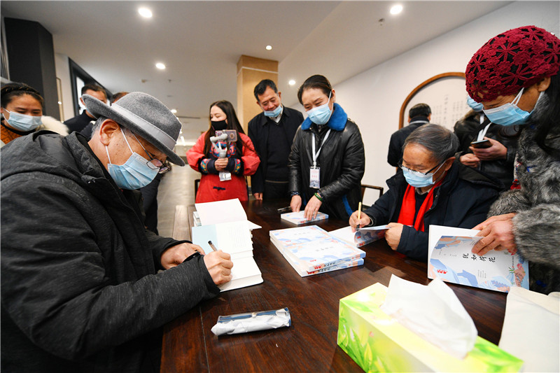 返鄉(xiāng)參加開館儀式的著名作家劉慶邦、墨白為讀者簽字贈(zèng)書