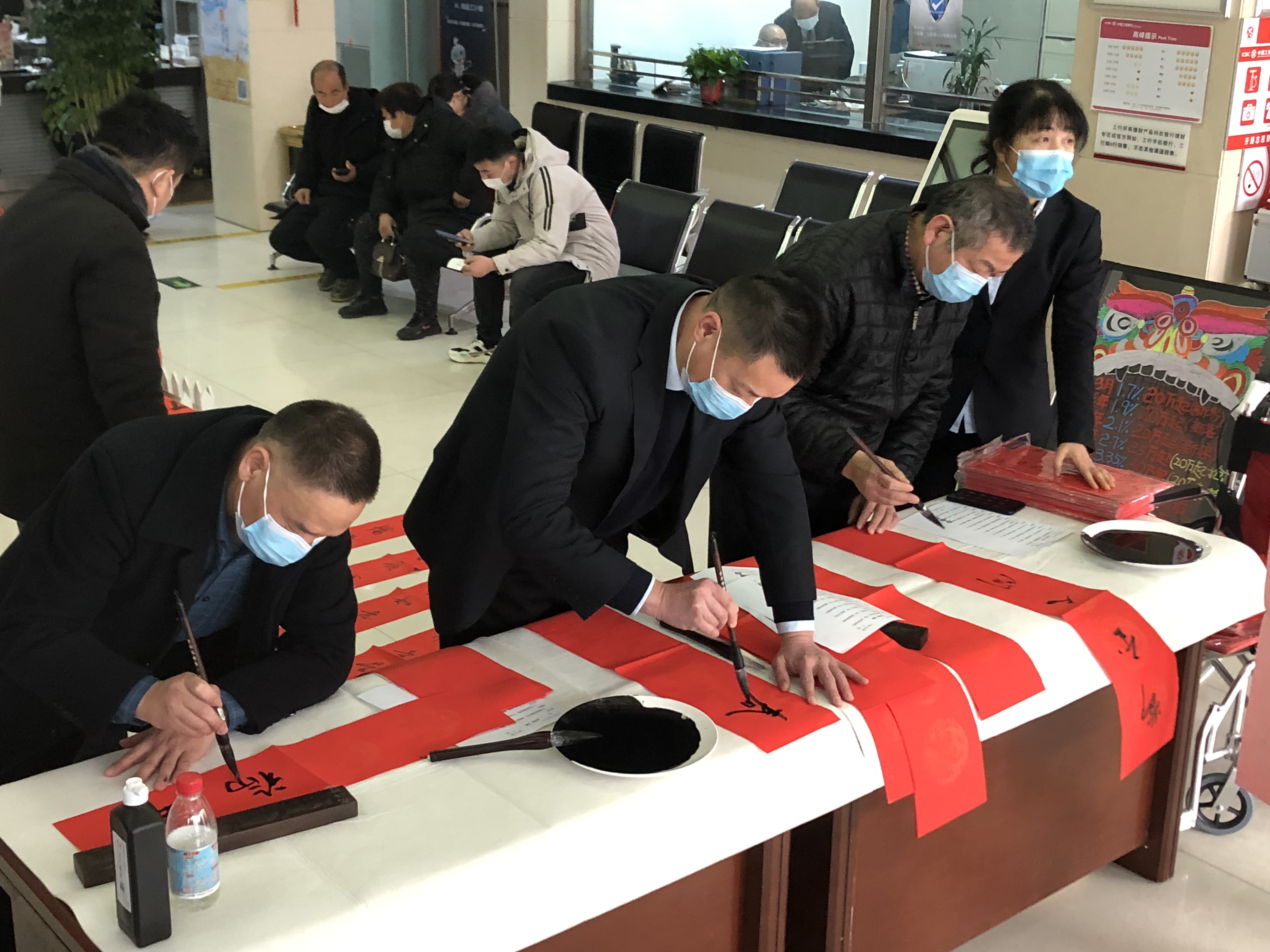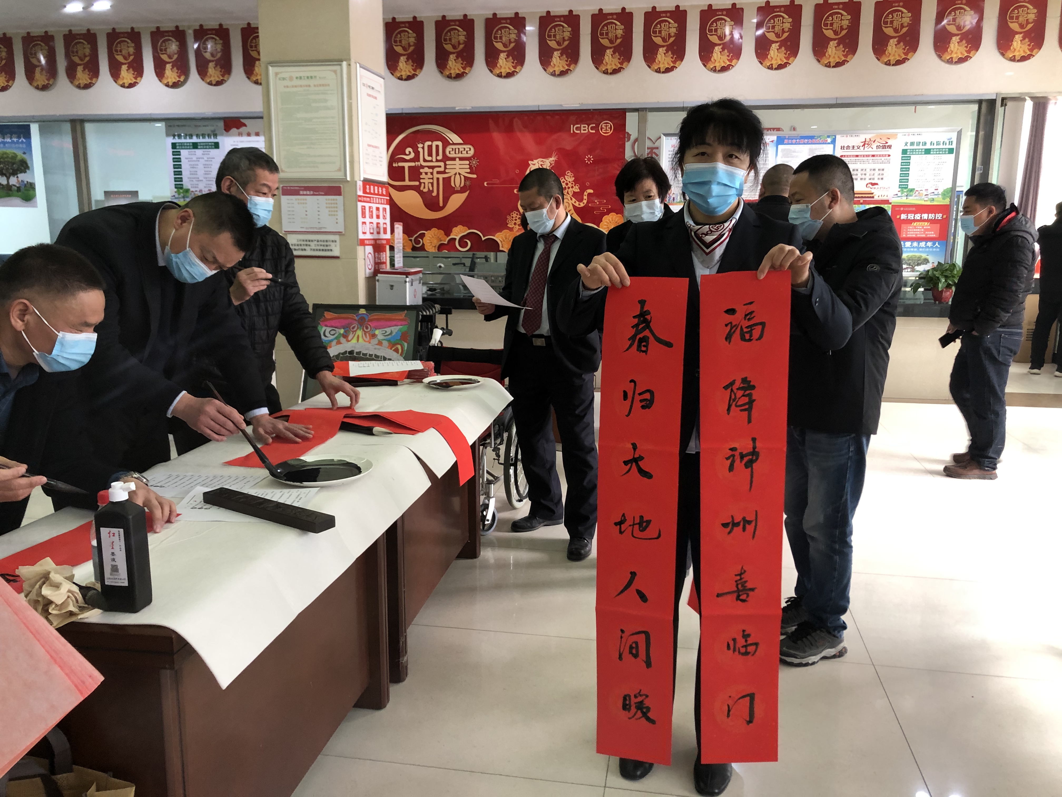 春節(jié)臨近,工行周口分行開(kāi)展“寫春聯(lián)送福字”活動(dòng),精心組織本行書法協(xié)會(huì)會(huì)員分赴基層網(wǎng)點(diǎn),在營(yíng)業(yè)廳堂揮毫潑墨,為客戶寫春聯(lián)、送福字。把一幅幅盛贊祖國(guó)昌盛、人民安居樂(lè)業(yè)、新春祝福送給客戶。此次活動(dòng),該行共計(jì)為客戶送出春聯(lián)1300余幅,受到廣大客戶的稱贊。 李玉 攝①2