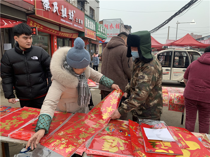 春節(jié)將至,不斷映入眼簾的喜慶“?!弊钟骋r著摩肩接踵的人群。趕集時,家家都要買幾張年畫、幾副春聯(lián),今年,以“虎”為主題的年畫春聯(lián)自然成了主角?!斑@個虎頭年畫今天已經(jīng)脫銷了,這個‘年年有余’的也喜慶。”攤主王大姐一邊幫顧客挑年畫一邊笑著說。年前,她早早囤好了近百種樣式的老虎年畫,現(xiàn)在看來還是不夠賣。除了過年必備的年畫春聯(lián),她還準備了紅燈籠、紅燭等,也十分暢銷。