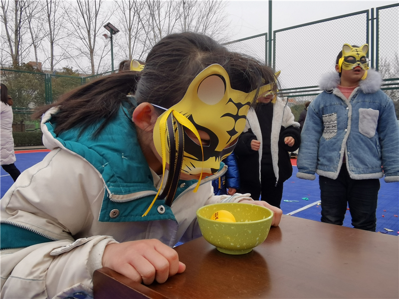 活動(dòng)現(xiàn)場,一條條燈謎掛在繩上供大家思考,猜出謎底的“虎娃”開心地把燈謎撕下來找工作人員兌換獎(jiǎng)品,玩得不亦樂乎。同時(shí),元宵節(jié)的傳統(tǒng)食物元宵也出現(xiàn)在活動(dòng)中,社工、志愿者設(shè)置的團(tuán)團(tuán)圓圓(歡樂夾元宵)游戲,用乒乓球代替元宵,讓“虎娃”們進(jìn)行大比拼,大家從剛開始的不熟悉變?yōu)楹髞碓絹碓侥?,現(xiàn)場其樂融融。隨后,聲聲報(bào)福(踩氣球)游戲?qū)⒒顒?dòng)推向高潮。