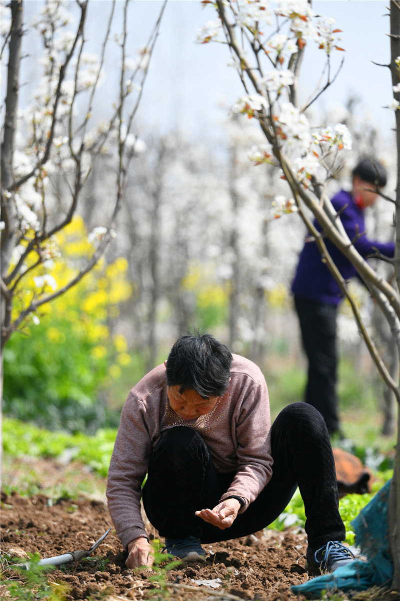 “谷雨前后,種瓜點(diǎn)豆。”距離谷雨節(jié)氣還有20多天,市城鄉(xiāng)一體化示范區(qū)文昌辦事處陳灘村的農(nóng)民趁著雨后好墑情,在花開如雪的梨園深處除草、點(diǎn)種黃瓜籽。周口日?qǐng)?bào)·周道客戶端記者 梁照曾 攝