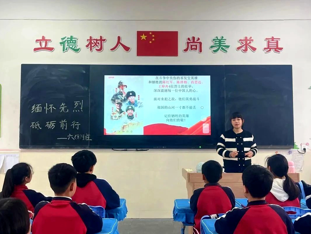 • 3月29日,項(xiàng)城市名仕路學(xué)校開展清明節(jié)網(wǎng)上祭奠英烈愛國(guó)主義思政課。師生們隔著屏幕沉痛祭奠革命先烈,緬懷他們的豐功偉績(jī),表達(dá)深切哀思之情。