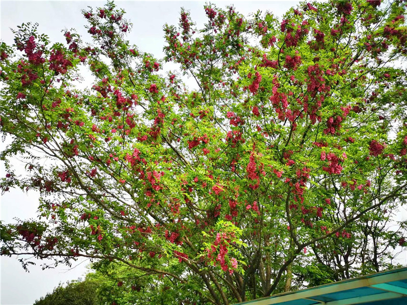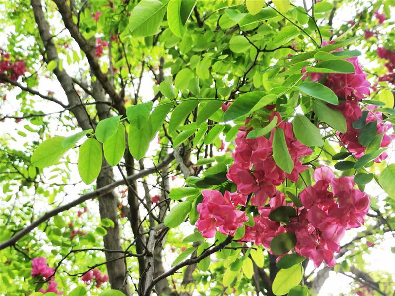 “槐林五月漾瓊花,郁郁芬芳醉萬家?!毖巯?,在周口濱河公園,紅色的槐花怒放,芳香四溢,惹人心醉。陽光下,一串串、一簇簇、一樹樹槐花隨風搖曳,美不勝收。周口日報·周道客戶端記者 普淑娟 攝