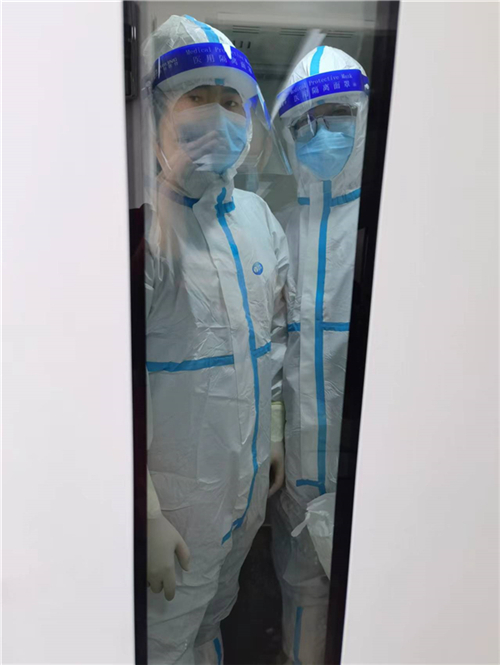 如果說有一座城叫眾志成城,那必定有一種力量叫檢驗擔當。在幾十平方米的實驗室內(nèi),環(huán)境消毒、物資準備、接收標本、編號錄入、核酸提取、環(huán)境消殺、基因擴增、結(jié)果研判、高壓消毒、信息上報、表格填寫、室內(nèi)質(zhì)控、室間質(zhì)評……每一個環(huán)節(jié)都需要嚴格規(guī)范操作,不放過任何一個細節(jié)、不能有一絲毫紕漏。在核酸檢測過程中,王健嚴格遵守生物安全制度,標準穿戴三級防護裝備,帽子、N95口罩、防護服、護目鏡、乳膠手套、隔離衣……一個也不能少。為以最快速度出具檢測結(jié)果,確保實驗室安全,王健在低于標準大氣壓的負壓狀態(tài)下進行工作。三級防護和大量檢測工作時常會使他出現(xiàn)汗流浹背、呼吸不暢、頭痛等缺氧癥狀,對體力是一個極大挑戰(zhàn)。但他總能克服這些困難,不辜負黨和人民的期望,在抗擊新冠肺炎疫情的戰(zhàn)場上勇?lián)姑?、沖鋒在前,為人民群眾筑起生命健康的第一道防線!