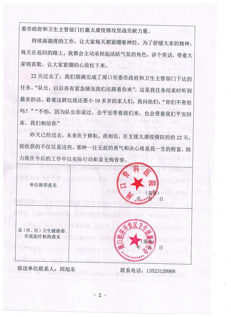 昨天已經(jīng)過去,未來在于耕耘。我相信,在支援太康疫情防控的22天,我收獲的不僅僅是這些。那種一往無前的勇氣和決心將是我一生的財富,助我在今后的工作中以實(shí)際行動彰顯無悔者春。②16
