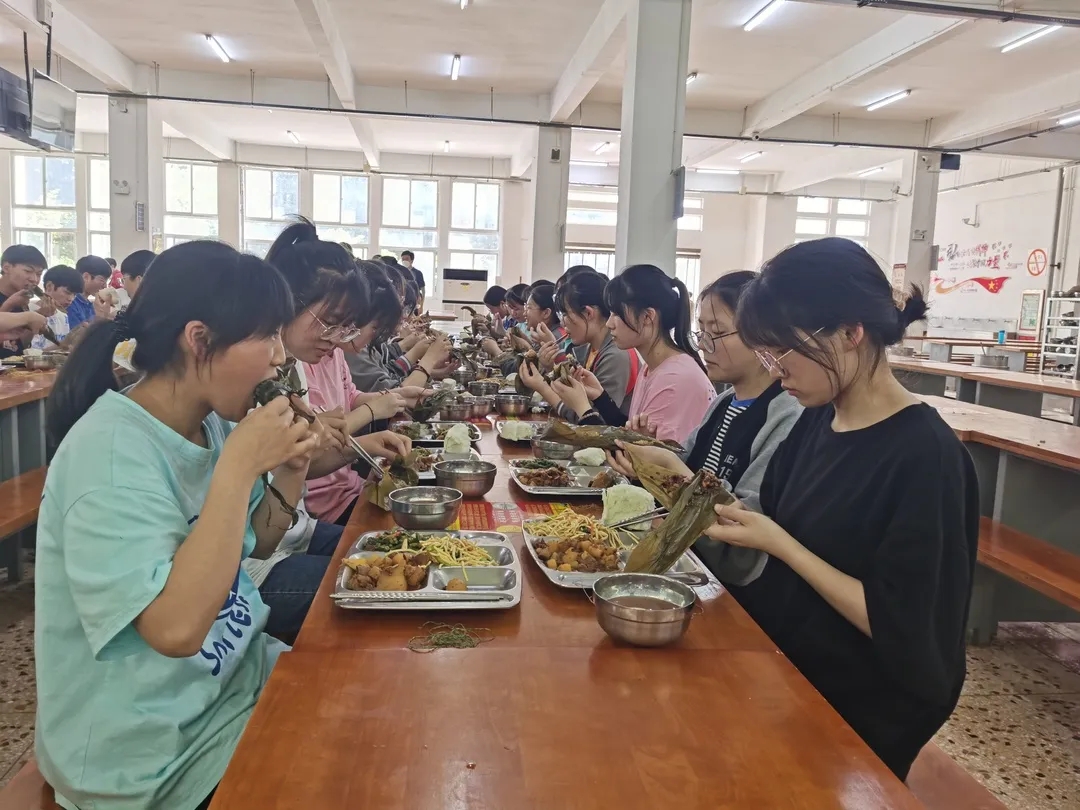 小小粽子,深深情誼。同學(xué)們接過粽子,滿懷感恩,臉上洋溢著喜悅的笑容。老師們還將粽子掛在教室門口,同學(xué)們離開教室時輕快跳起,用頭頂粽子,寓意“一定高中”,中午就餐時間,熱氣騰騰的粽子讓同學(xué)們通過舌尖上的美味感知傳統(tǒng)文化魅力,在愉悅的氛圍中煥發(fā)昂揚斗志,實踐青春誓言。