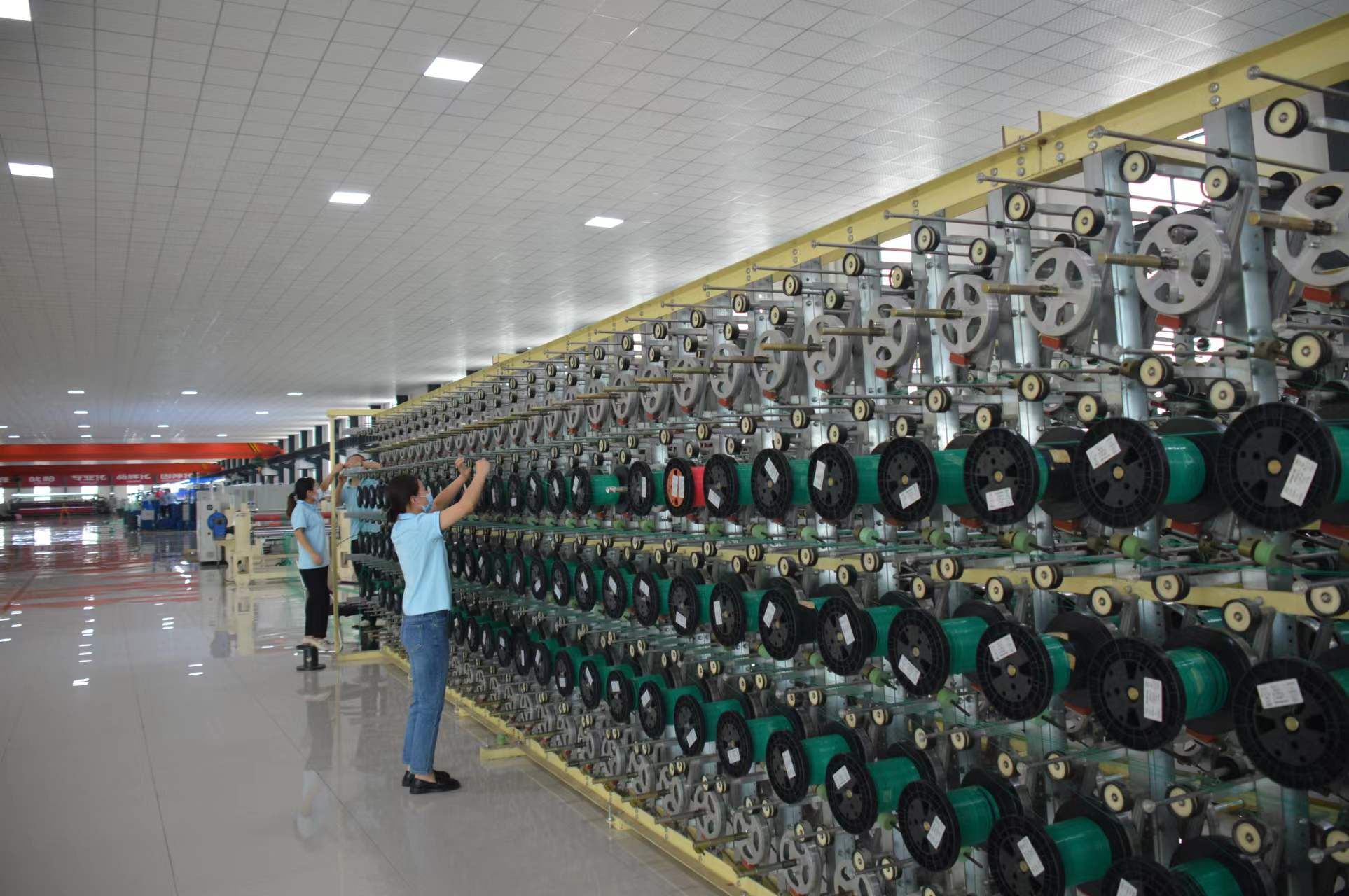 在經(jīng)濟(jì)開(kāi)發(fā)區(qū)晶鑫科技生產(chǎn)車間,只見(jiàn)高大寬敞的車間內(nèi),工人們?cè)诟髯詬徫簧嫌袟l不紊地忙碌著。拉絲車間里,一臺(tái)大型編織機(jī)械運(yùn)轉(zhuǎn)著,一名技術(shù)人員在操控臺(tái)上注視著屏幕?!斑@是剛引進(jìn)的國(guó)外設(shè)備,生產(chǎn)效率很高?!避囬g負(fù)責(zé)人介紹說(shuō)。在編織車間,工作人員馬杰通過(guò)顯示屏正在熟練地操作著一臺(tái)編織機(jī)。“這臺(tái)機(jī)器比人工效率要高出好多倍。”她對(duì)自己能操作一臺(tái)技術(shù)要求很高的自動(dòng)化生產(chǎn)設(shè)備感到特別自豪。“我們生產(chǎn)的聚酯網(wǎng)產(chǎn)品在市場(chǎng)上供不應(yīng)求。”車間負(fù)責(zé)人說(shuō)。