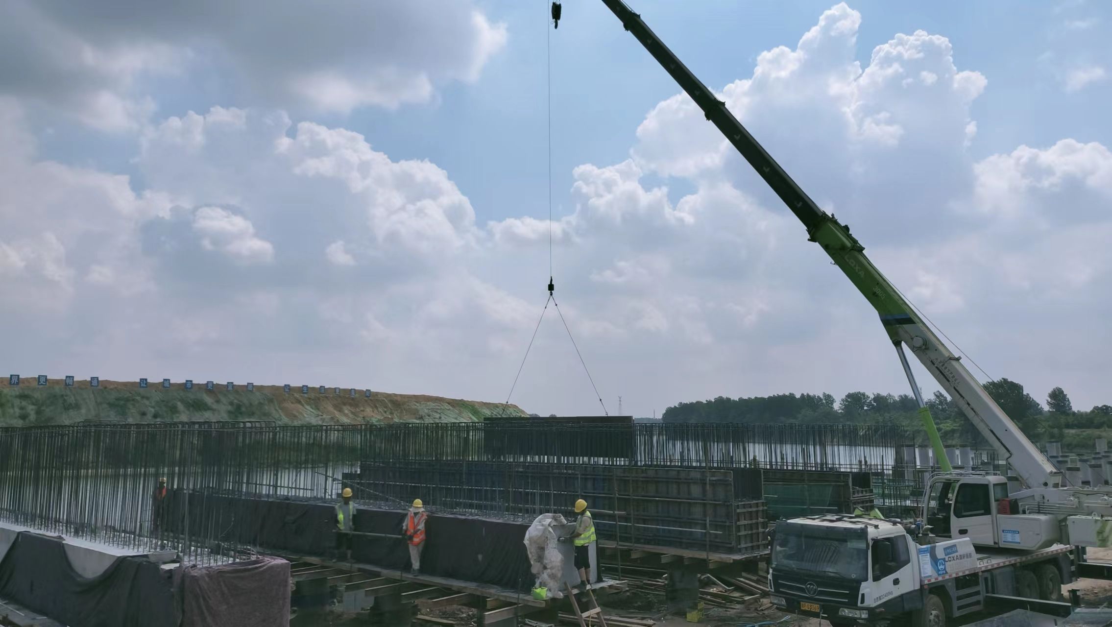 “由于工程進(jìn)度快,我們要在這兒時(shí)刻緊盯住,質(zhì)量上不能出現(xiàn)任何問(wèn)題?!痹谥茕摯a頭建設(shè)工地上,只見(jiàn)一根根粗壯的停泊位專用水泥柱整齊地排列在沙潁河岸邊,高大的塔吊正在向上面吊裝預(yù)制板,工人們?cè)诟叽蟮哪_手架上工作著,一個(gè)新型專用碼頭已見(jiàn)雛形。馬工程師和幾名工程技術(shù)人員在作業(yè)區(qū)不停地巡視著,巡視間隙,他對(duì)記者說(shuō)。