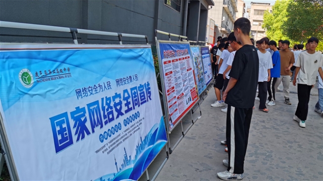 9月6日是國(guó)家網(wǎng)絡(luò)宣傳周校園日,鹿邑縣第二高級(jí)中學(xué)校園里整齊地?cái)[放出數(shù)塊制作精美、內(nèi)容充實(shí)的網(wǎng)絡(luò)安全宣傳展板,引起師生們駐足觀看。