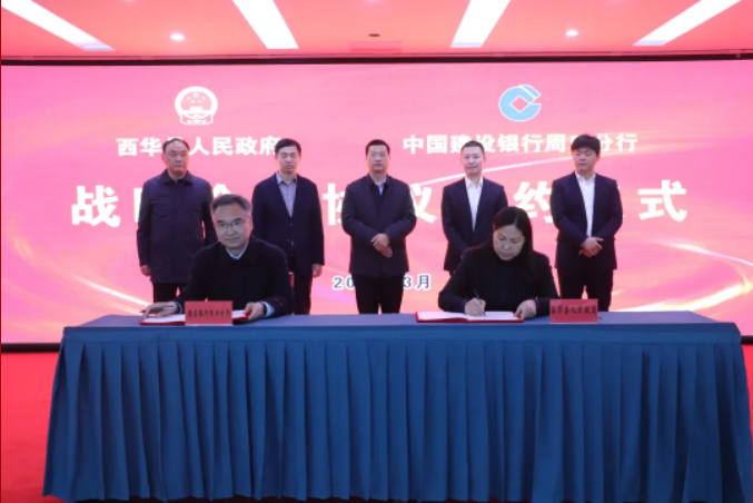 胡偉中副行長代表建行周口分行與西華縣政府簽訂戰(zhàn)略合作協議