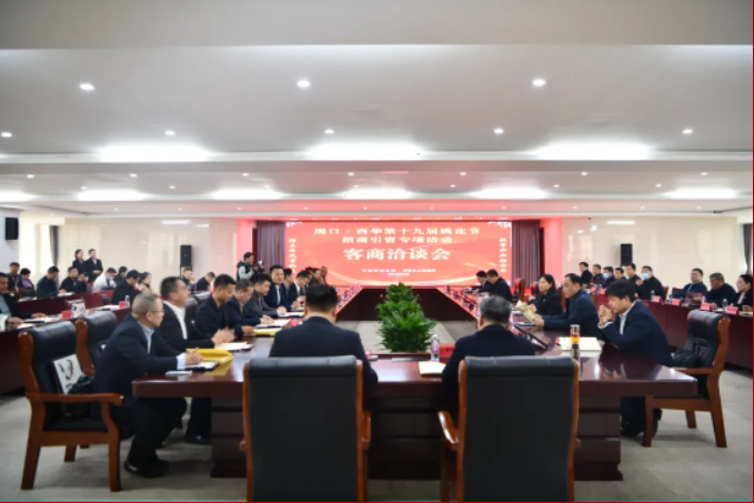 周口·西華第十九屆桃花節(jié)招商引資專項活動客商洽談會現場