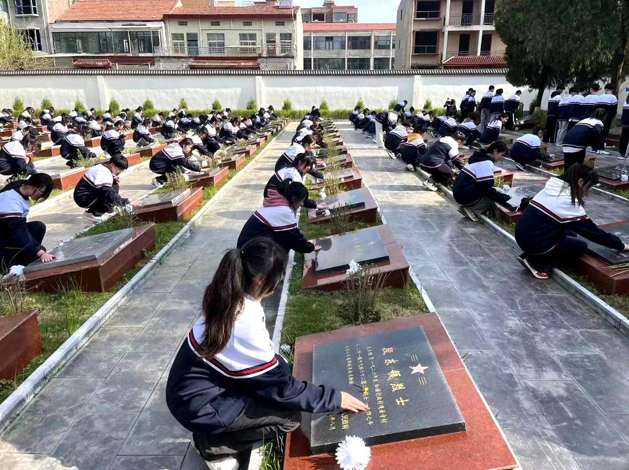當(dāng)日上午,鄲城縣第三高級(jí)中學(xué)為悼念革命烈士,緬懷先烈的豐功偉績(jī),教育學(xué)生弘揚(yáng)民族精神,加強(qiáng)愛國主義教育,組織師生到鄲城縣烈士陵園開展“清明祭英烈 ”為主題的清明節(jié)祭掃活動(dòng)。