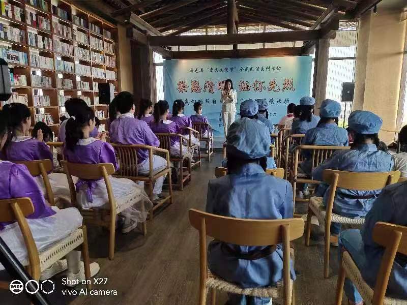 活動由該縣文化廣電和旅游局主辦,縣圖書館承辦,旨在緬懷追憶革命先烈英雄事跡,持續(xù)深化“惠民文化節(jié)”全民閱讀系列活動,向青少年學(xué)生普及清明節(jié)文化知識。當(dāng)日,在該縣圖書館三樓,縣圖書館工作人員講述全縣部分革命先烈英雄事跡和悲壯故事;縣文化廣電和旅游局工作人員講解清明節(jié)由來、清明節(jié)習(xí)俗、清明節(jié)為什么要文明祭祀、清明節(jié)為什么要祭祀和掃墓等知識;身著“小八路軍裝”的青少年學(xué)生依次登臺,聲情并茂地朗誦《中國人清明節(jié)》《清明的雨》《我愛你中國》《鄉(xiāng)愁》《清明詩詞》《不朽》《青松禮贊》《穿越時空的對話》等經(jīng)典詩詞,表達對革命先烈的無限崇敬和緬懷。