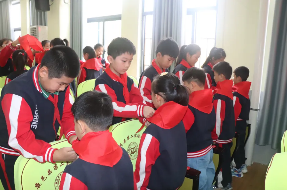儀式上,該校副校長肖東旭宣布新隊員名單,230名同學加入中國少年先鋒隊,成為一名光榮的少先隊員。緊接著,四年級優(yōu)秀隊員代表莊重地為新隊員代表系上鮮艷的紅領巾。在大隊長的帶領下,全體隊員在隊旗下莊嚴宣誓。少先大隊委員熱烈歡迎新隊員加入。