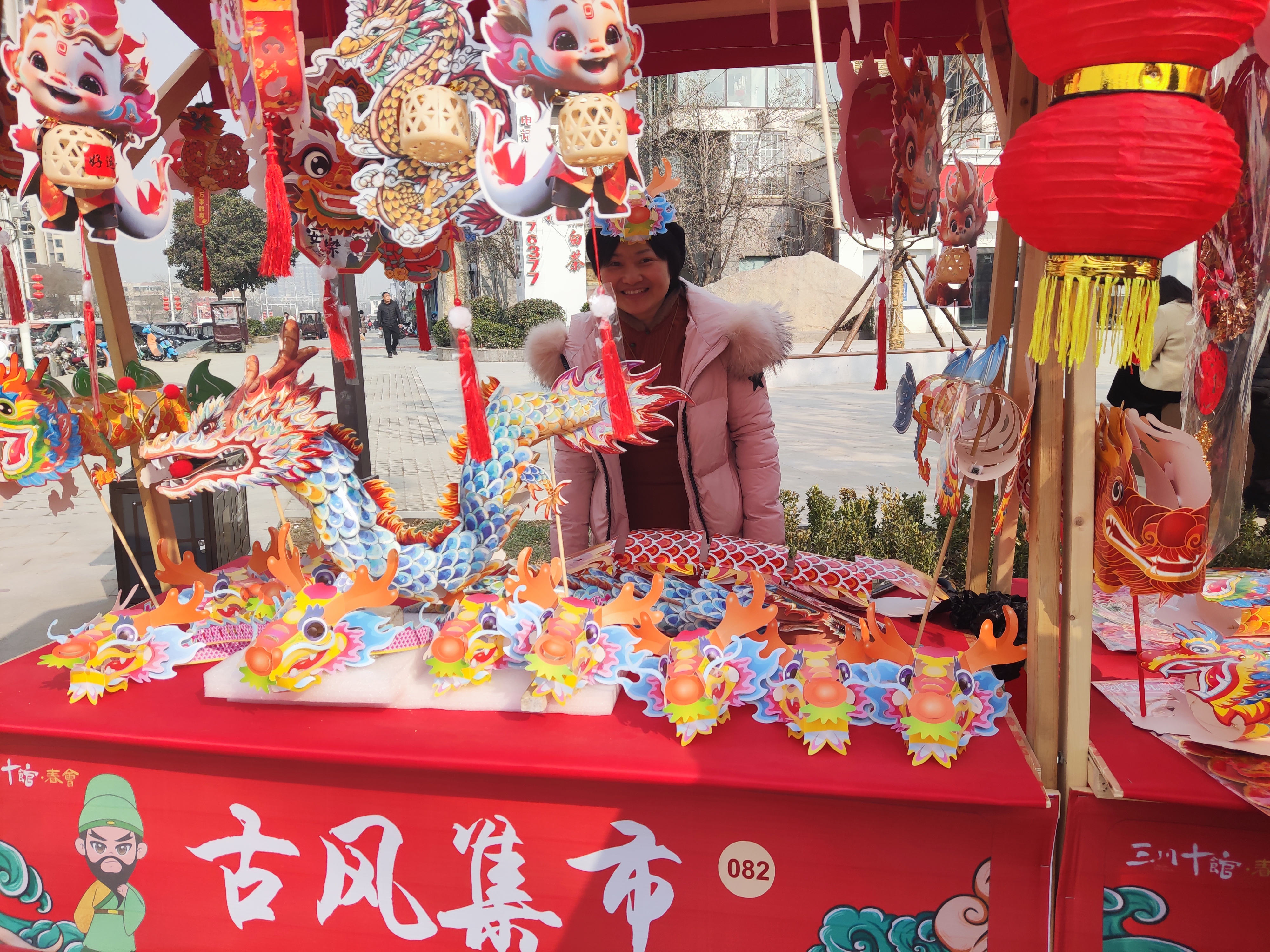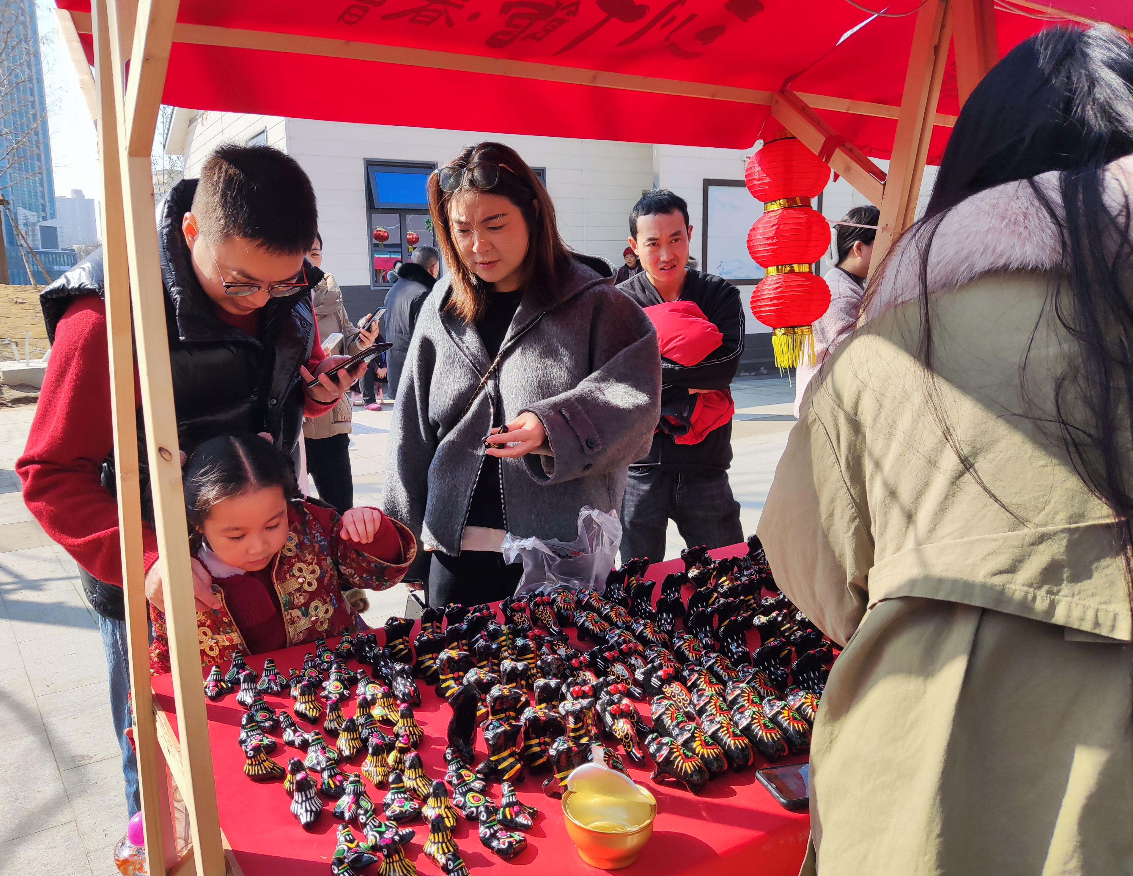 2月12日,“三川十館·春會”關帝廟歷史街區(qū)的“古風集市”上,人來人往、熙熙攘攘。布老虎、泥泥狗、剪紙、棕編、草編、糖人等具有周口特色的非遺產(chǎn)品營造了濃濃的年味,吸引大量游客前來欣賞、購買。多姿多彩的非遺產(chǎn)品也讓龍年春節(jié)更加具有文化氣息。(記者 王吉城 攝)
