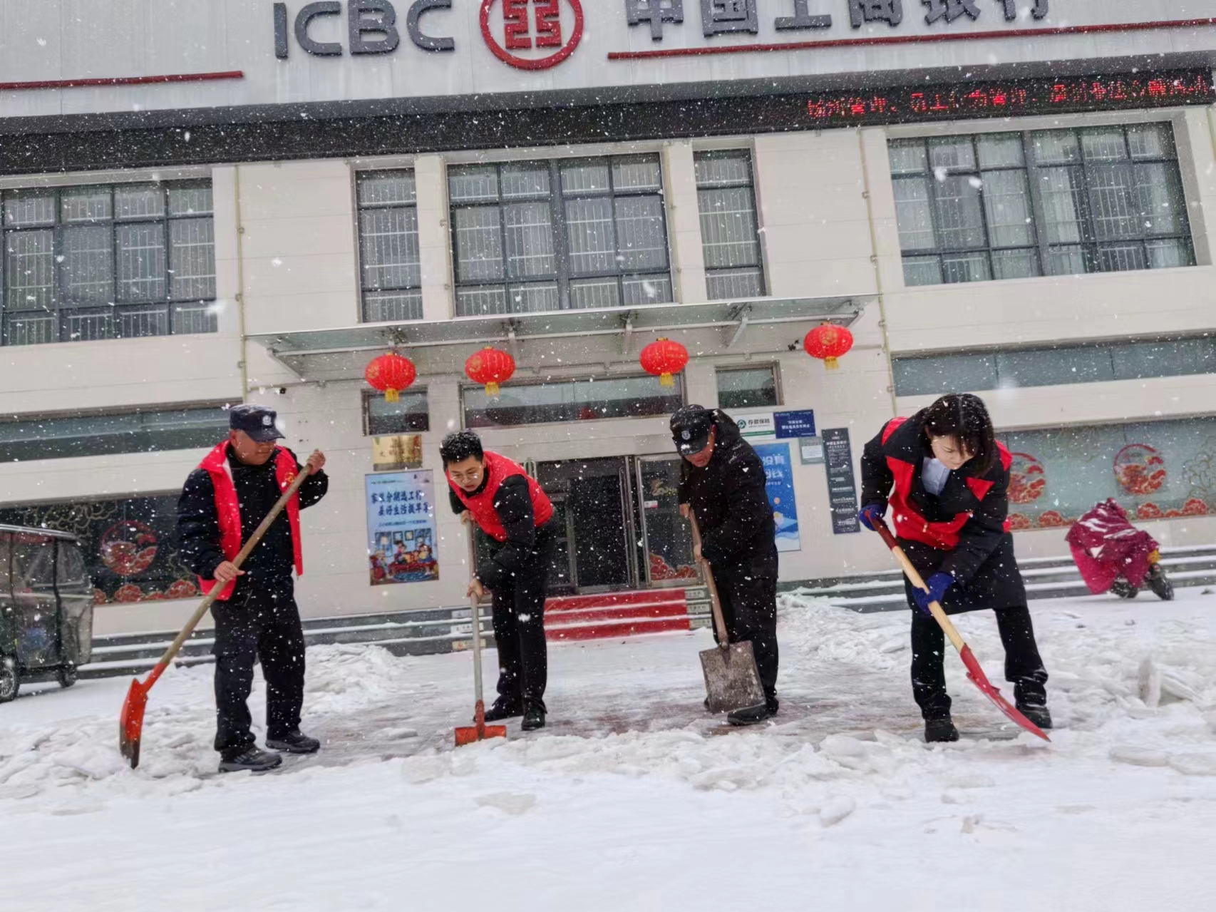 為全面應(yīng)對我市大范圍降溫雨雪天氣,工行周口分行以雪為令,積極響應(yīng)周口市文明辦清理積雪倡議,啟動應(yīng)急預(yù)案,嚴(yán)格按照市文明辦清理積雪,保障市民外出道路暢通工作部署,統(tǒng)籌協(xié)調(diào),組織轄內(nèi)各機構(gòu)發(fā)動黨員、志愿者全力參與門前三包道路清理積雪活動。該行各營業(yè)網(wǎng)點在營業(yè)前,組織志愿者通過拋撒融雪劑、清掃鏟除分包路段及門店前積雪,清理出一條條便民通道,保障市民和客戶暢通出行。同時,各營業(yè)網(wǎng)點在門前鋪設(shè)防滑設(shè)施,為客戶到網(wǎng)點辦理業(yè)務(wù)提供安全保障。