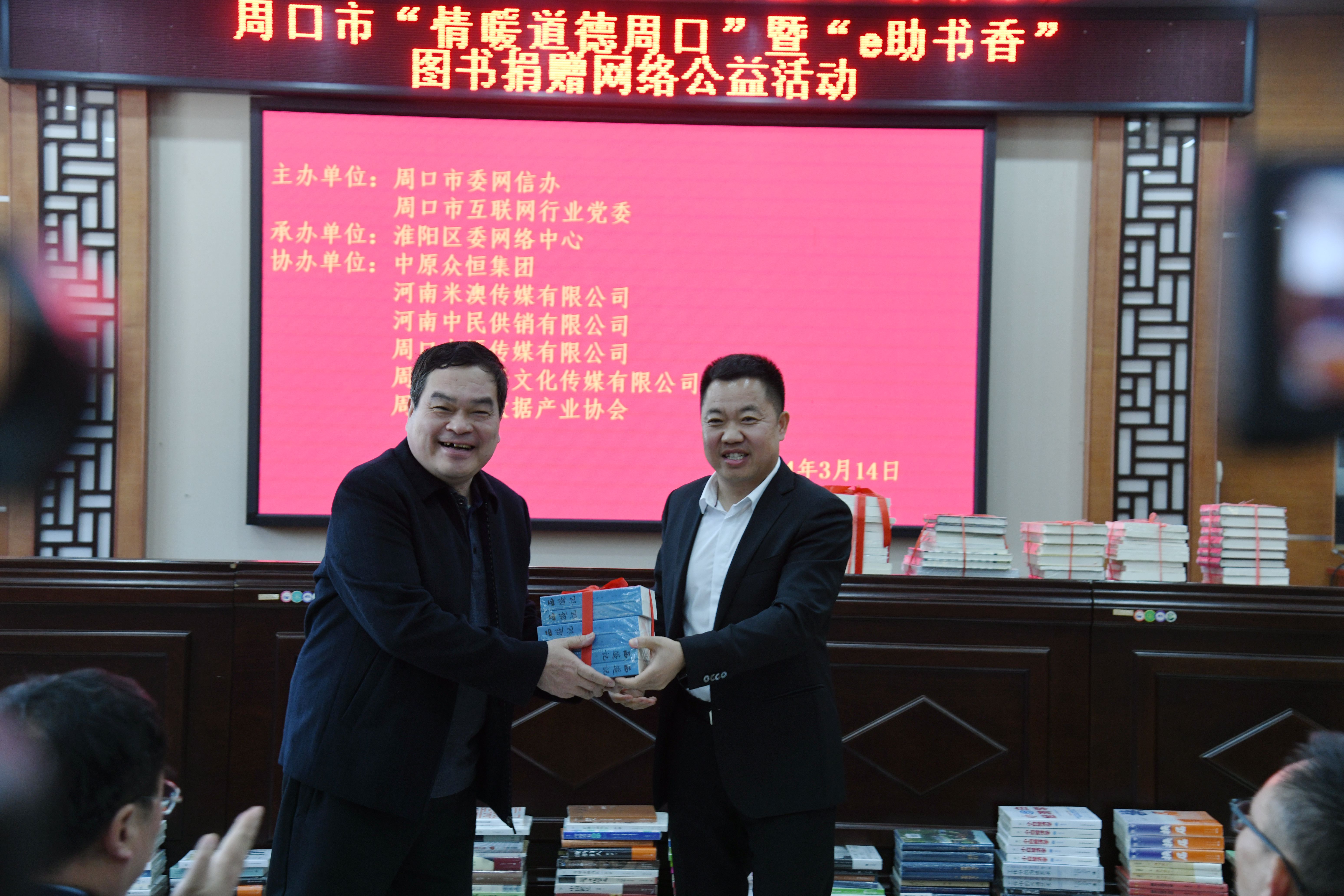 3月14日,由周口市委網(wǎng)信辦、周口市互聯(lián)網(wǎng)行業(yè)黨委主辦的“情暖道德周口”暨“e助書香”圖書捐贈網(wǎng)絡公益活動在淮陽區(qū)舉行。我市6家愛心企業(yè)聯(lián)合捐贈一批圖書,為正在火熱進行的伏羲書展助上一臂之力。