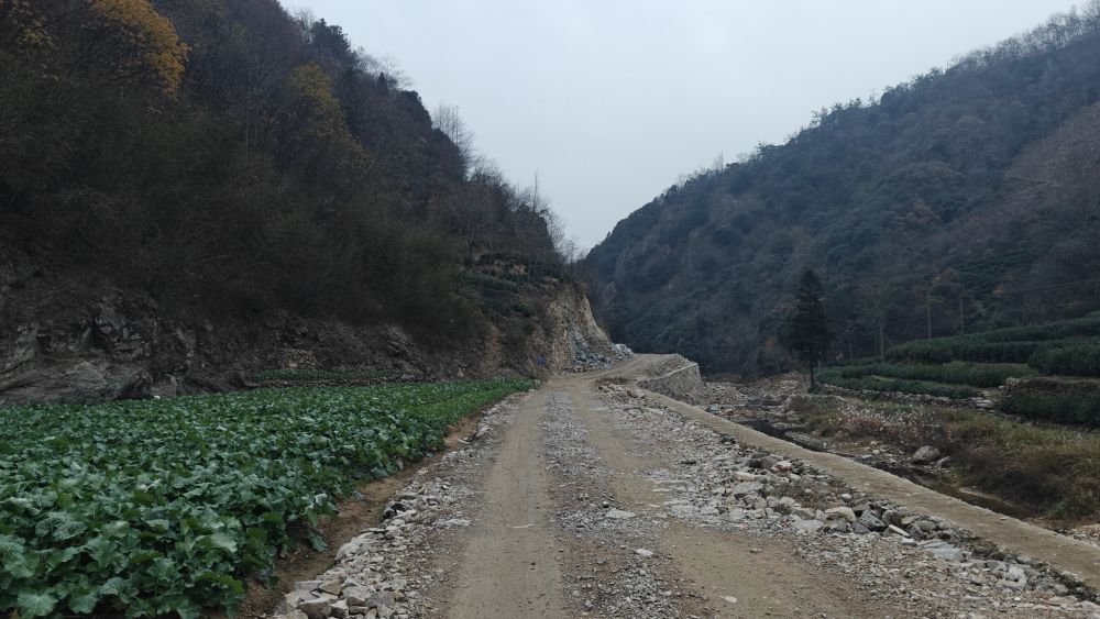 ??新修的路基從彭志苗家的菜地旁經(jīng)過。新華社記者 陳諾 攝