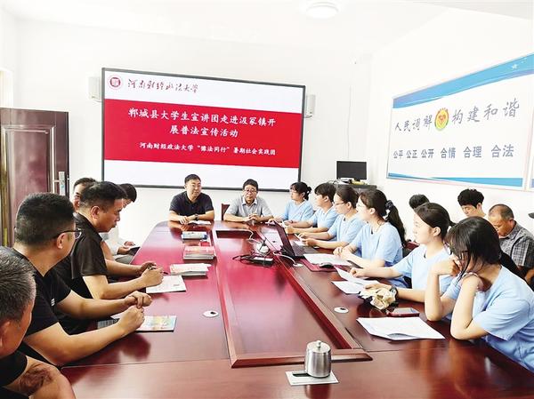 本報(bào)訊 (記者 徐松 通訊員 邢佰強(qiáng) 翟玥 趙坤哲 文/圖) 為推動(dòng)法治鄉(xiāng)村建設(shè),7月11日,鄲城縣委宣傳部和縣司法局組織法律專(zhuān)業(yè)大學(xué)生成立宣講團(tuán),到汲冢鎮(zhèn)開(kāi)展普法宣傳活動(dòng)。大學(xué)生志愿者走進(jìn)田間地頭,把“法言法語(yǔ)”化為“鄉(xiāng)音鄉(xiāng)語(yǔ)”,為法治鄲城建設(shè)注入了青春活力。